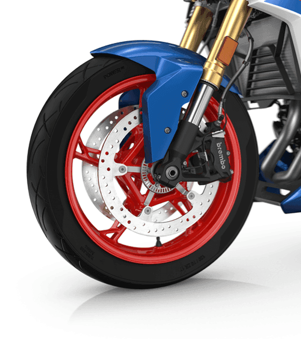 De lette fælge sikrer perfekt håndtering. De er overtaget fra den dynamiske S 1000 R Roadster og giver en vægtreduktion på omkring 1,8 kg sammenlignet med forgængermodellen.