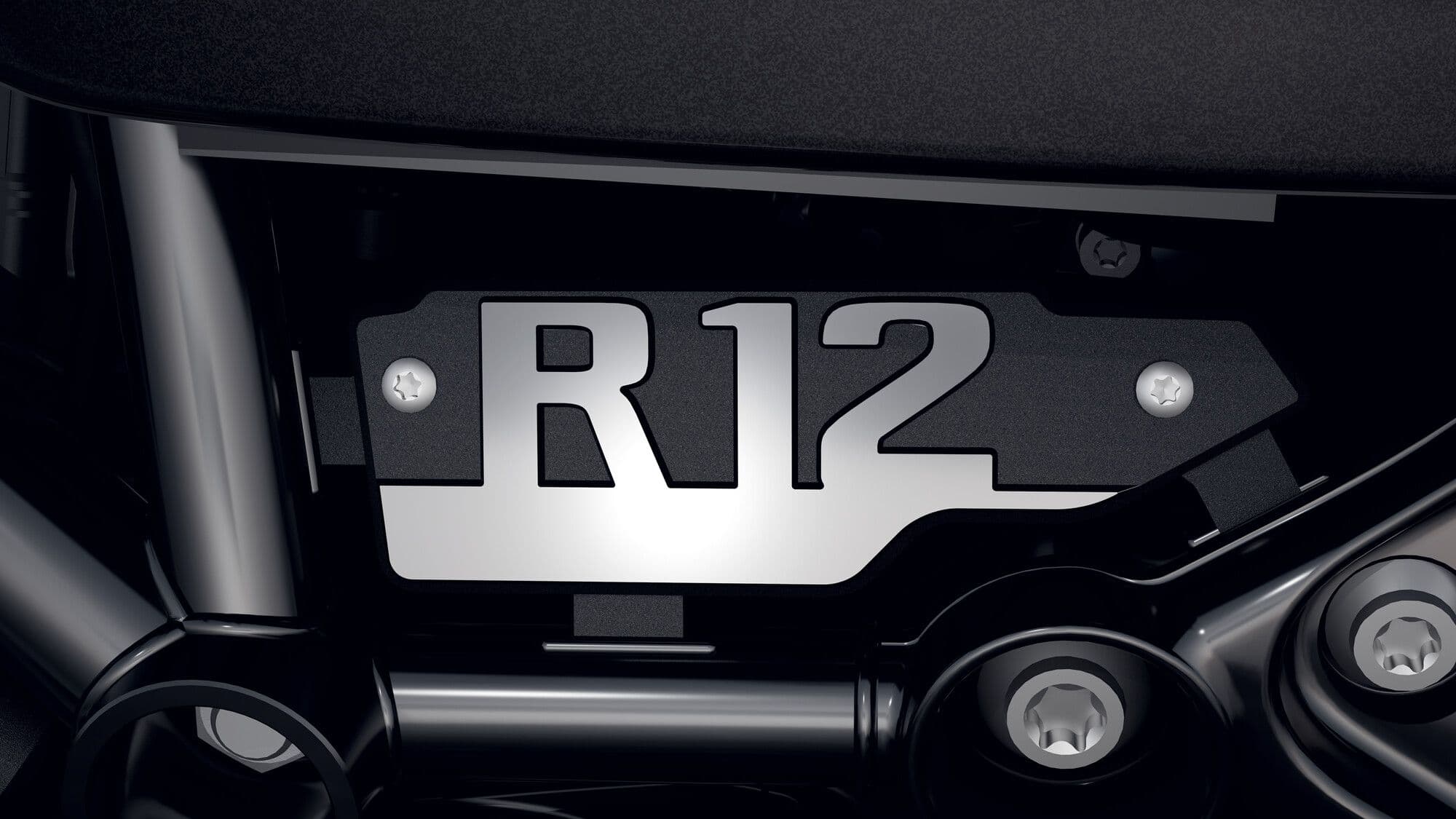 Den blanke, chromed aluminiumsplade med modelnavn giver din R 12 et eksklusivt præg og gør den let genkendelig, uanset hvor du kører.